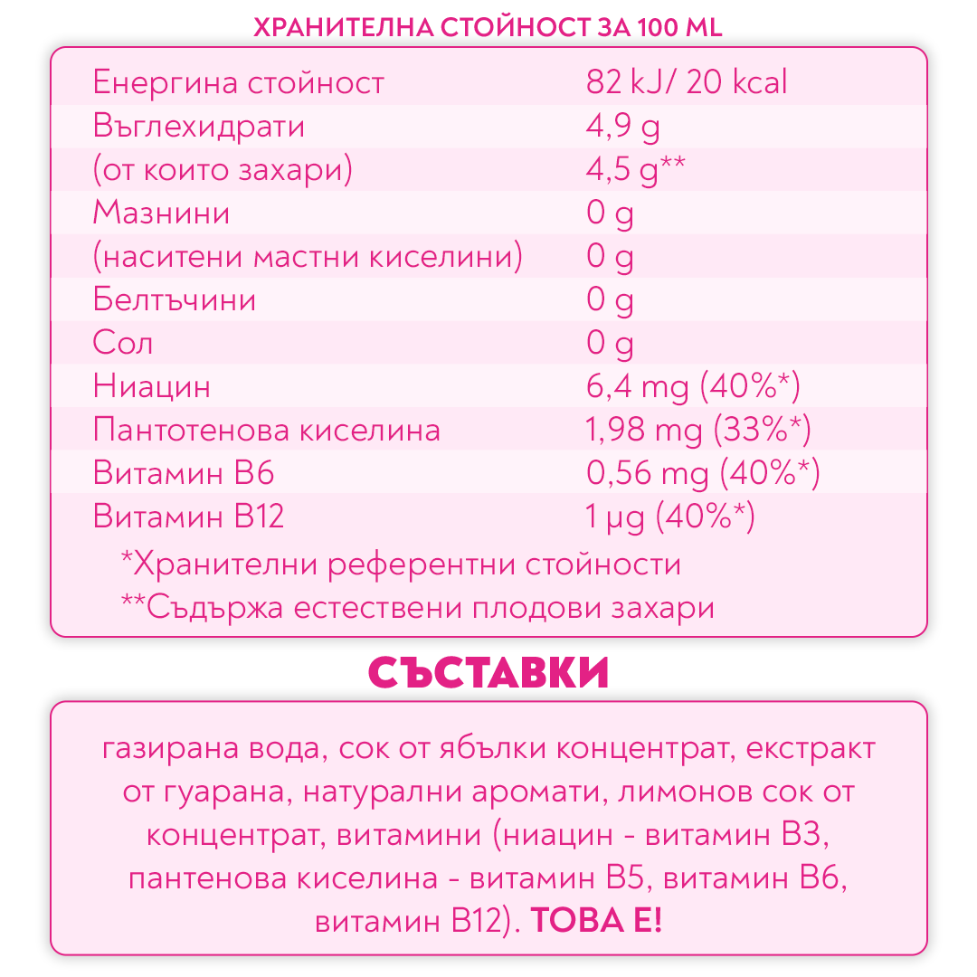 ✔️ Истински съставки: Екстракт от гуарана и витамини от група B – чиста сила от растенията. Без добавена захар, без консерванти.