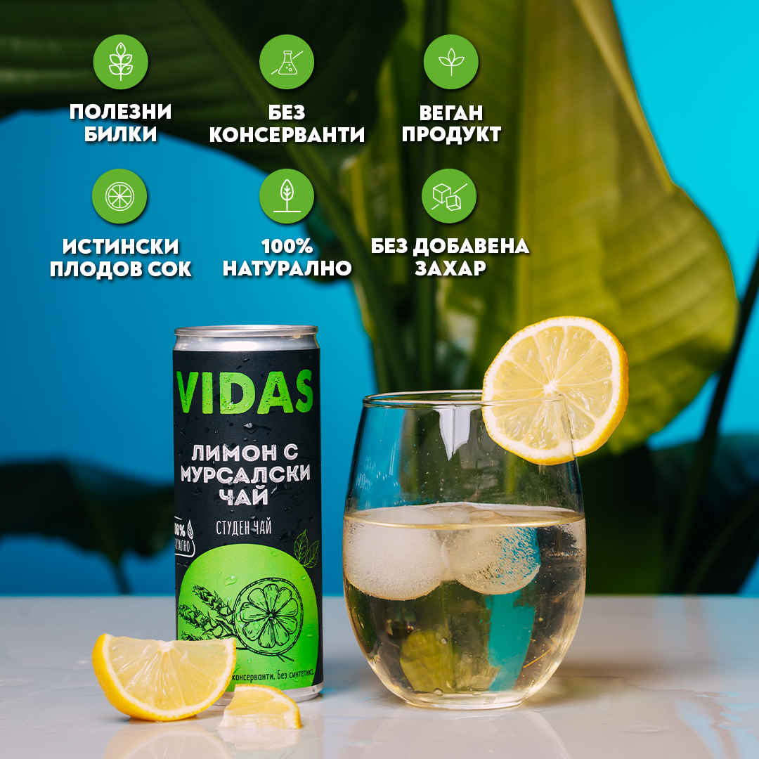 *Студен чай VIDAS Мурсалски чай с лимон, 250 мл, кен