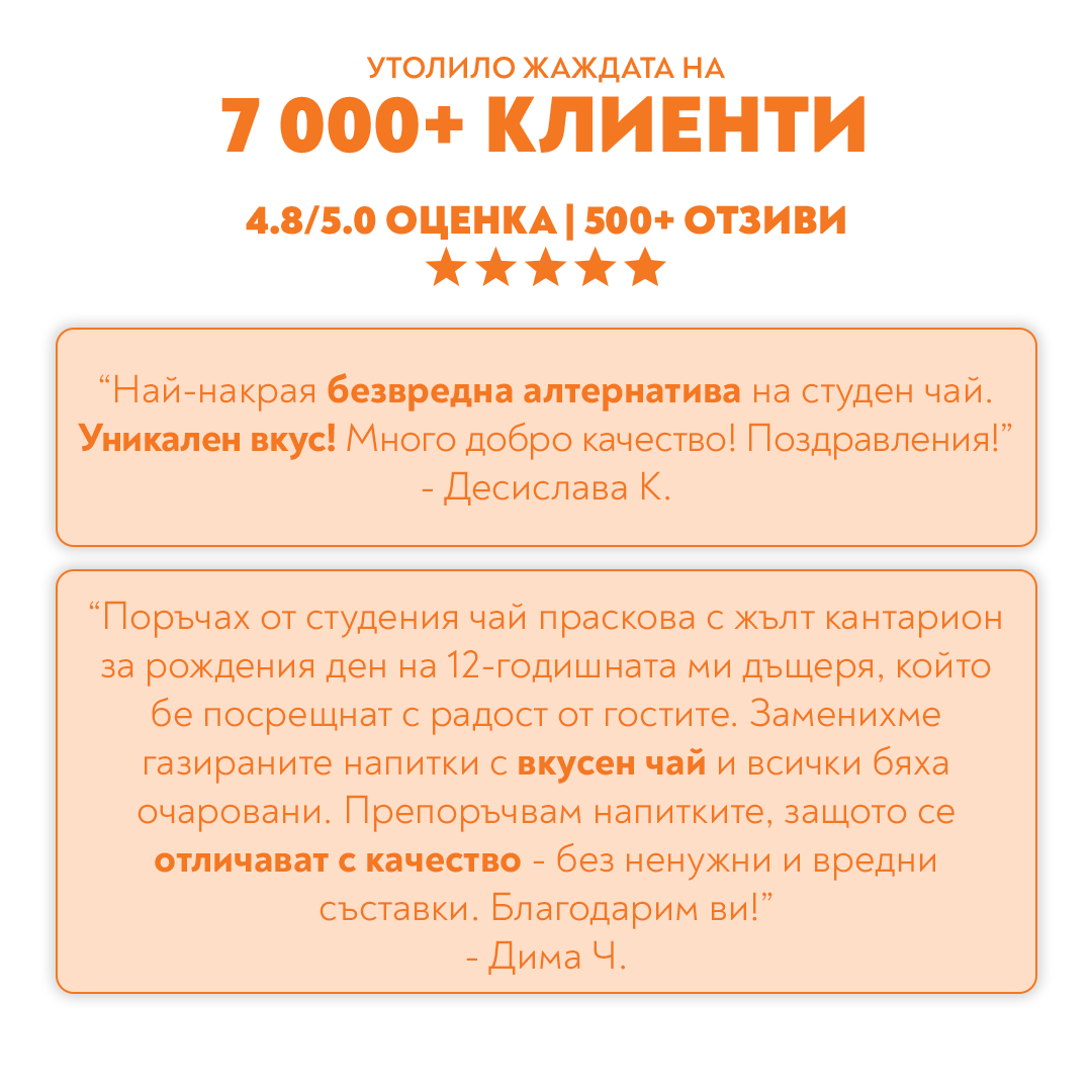 ✔️ Истински съставки: Натурален екстракт от жълт кантарион и истински сок от праскова. Без добавена захар, без консерванти.