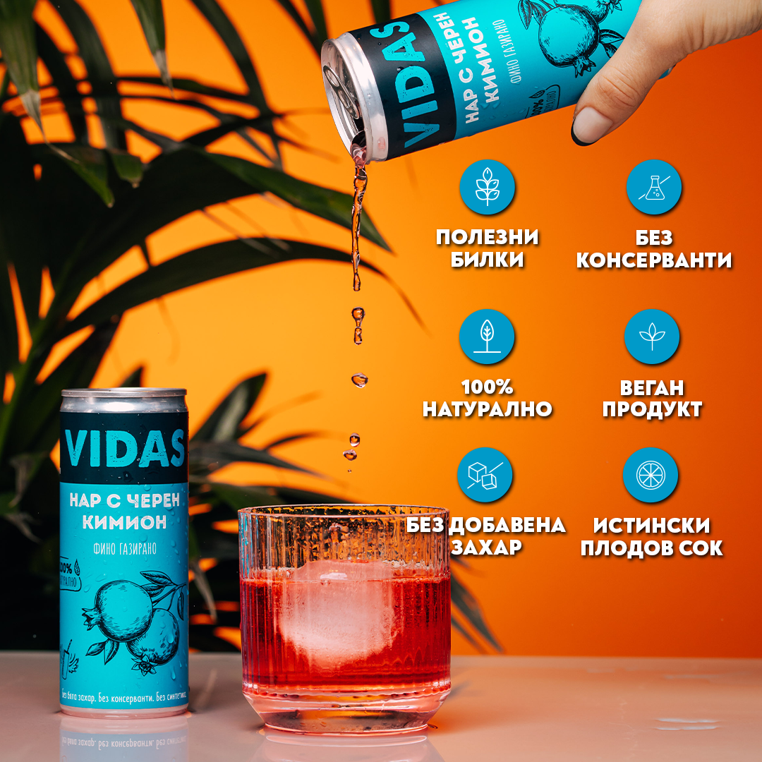 VIDAS е малък, независим бранд, създаден от хора, които искат напитки без фалш – истински билки, истински плодове и нулева химия. Не правим масови продукти. Работим с малки партиди и подбираме само качествени суровини - такива, които бихме дали на собствените си деца. Избираме вкусове, които имат смисъл за тялото: функционални, природни и подкрепящи имунната система. Тази напитка е точно такава: древен плод + лечебна билка = естествена формула за тонус и защита.