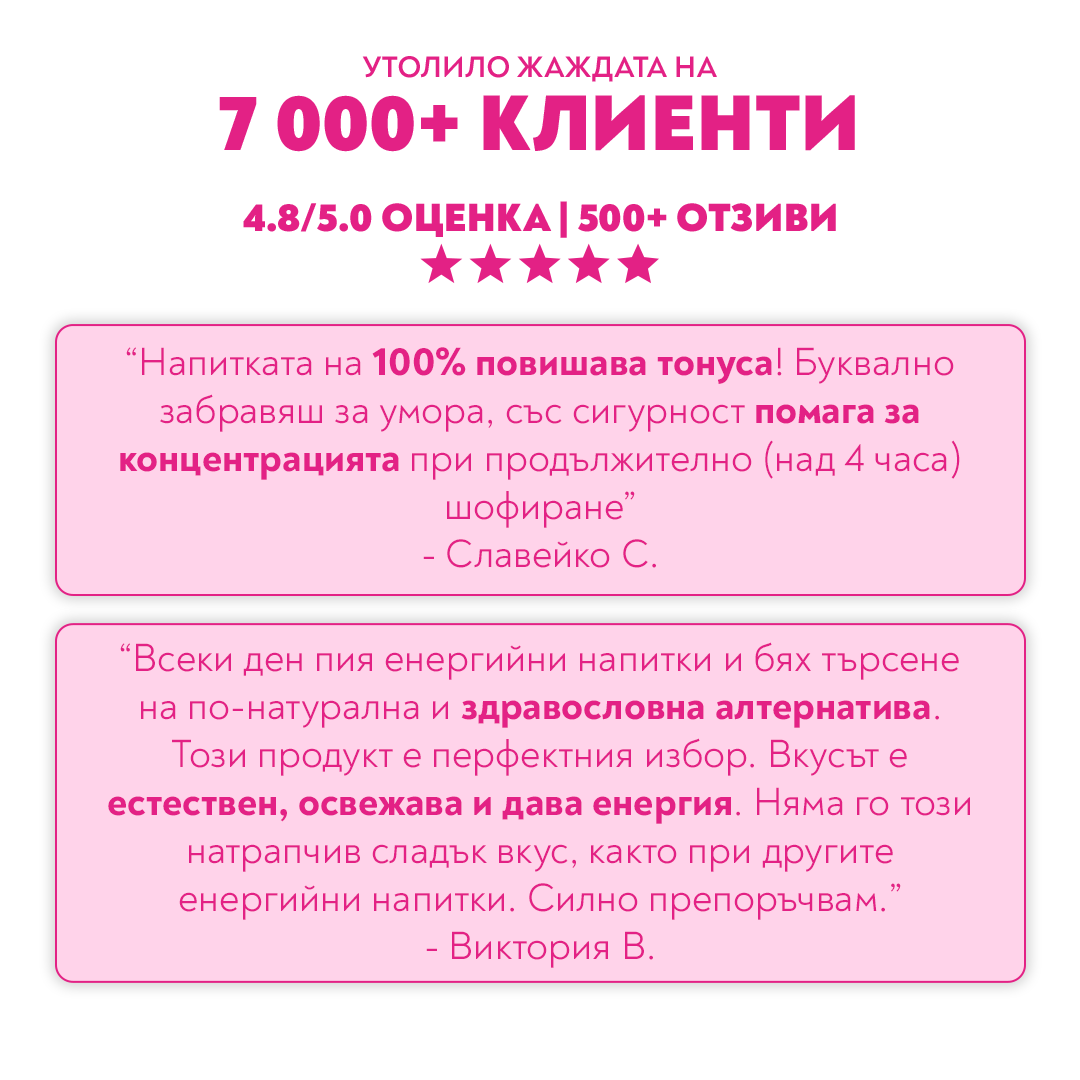 ✔️ Истински съставки: Екстракт от гуарана и витамини от група B – чиста сила от растенията. Без добавена захар, без консерванти.