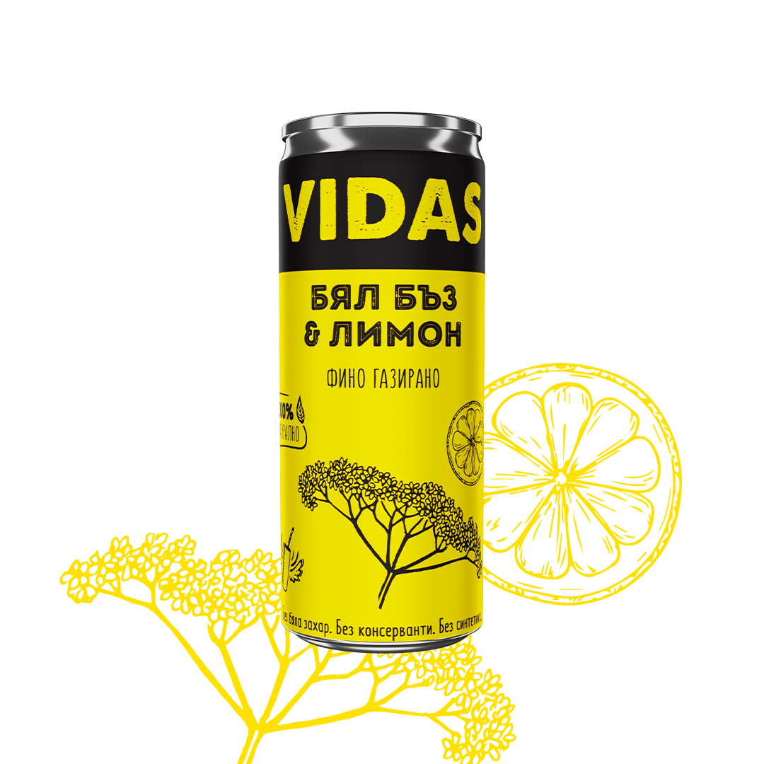 Фино газиран VIDAS Бял бъз с лимон, 250 мл, кен